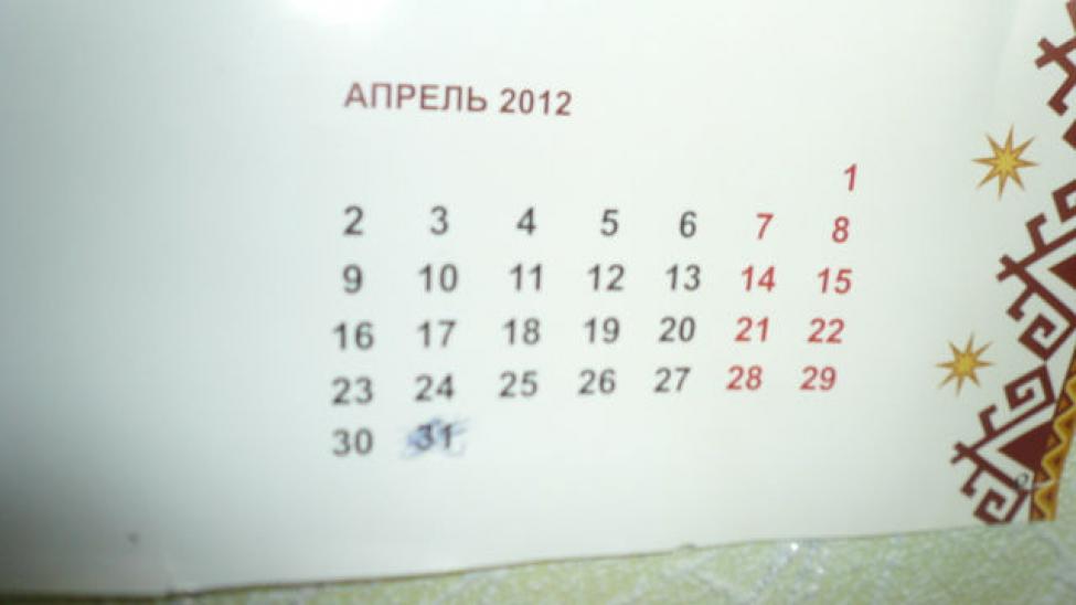 В апреле 2012 года был 31 день. Не верите? Вот фотография календаря. Жаль, что это всего лишь ошибка печати. И она не добавила еще один весенний день в году.