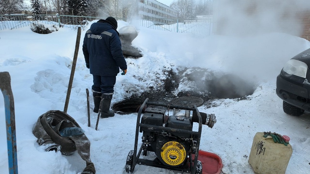 Авария в Линево случилась ночью 30 января. Без отопления остались несколько жилых домов. Из-за порыва на теплосети горячая вода затопила подвалы дома №8 на улице Первопроходцев.