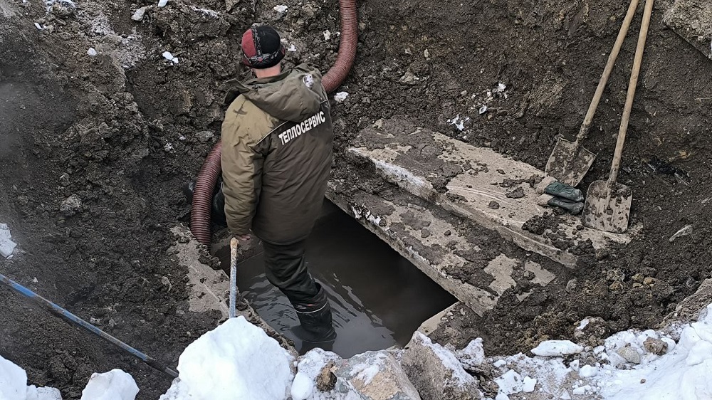 На 15.35 пятницы коммунальщики продолжают откачивать воду из теплотрассы.
