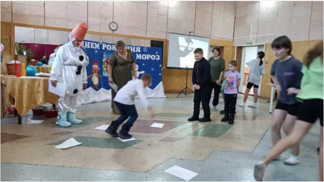 Затем появился помощник Деда Мороза – весёлый Снеговик. Он сообщил, что сам именинник приедет к нам на ёлку в декабре, а пока предложил повеселиться от души. Снеговик и ведущая провели шуточные конкурсы и подвижные игры, где дети показывали ловкость и смекалку.