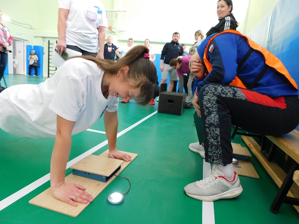 В школе №4 выполняли нормативы по нескольким видам: стрельба из пневматической винтовки, подтягивание, отжимание, пресс, прыжки в длину, рывок гири, тест на гибкость.