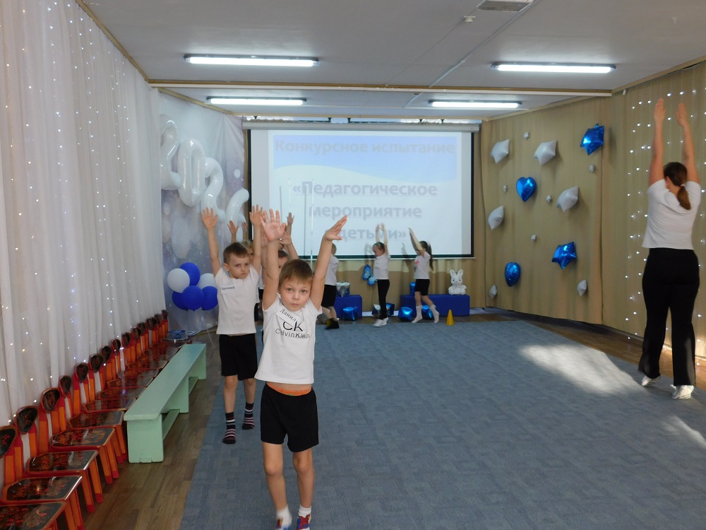 Открытое занятие на конкурсе Анна Николаевна проводила по теме «Хоровод дружбы народов», посвященный дружбе и единству народов России. Заводила с детьми татарский хоровод «Веселая тюбетейка» и карельский «Северное сияние».