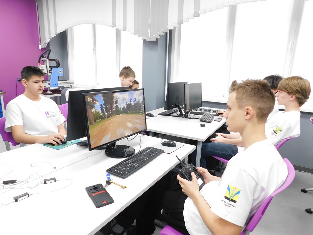 В другом кабинет школьники осваивают беспилотные авиационные системы. Одни собирают дроны. Другие тренируются в управлении БПЛА на симуляторах.