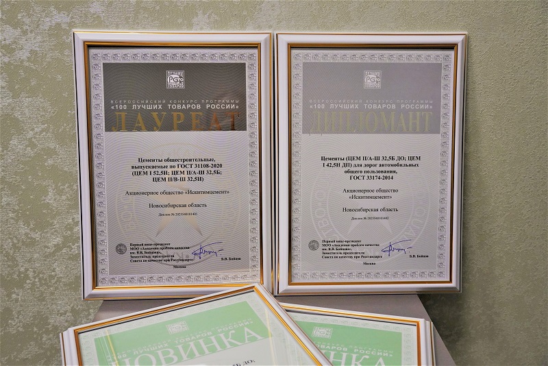 С 2014 года АО «Искитимцемент» регулярно становится победителем всероссийского престижного конкурса: пять раз предприятие признавалось лауреатом и девять раз – дипломантом. Дважды компания удостаивалась переходящего знамени «За выдающиеся достижения в области качества». Победа в конкурсе дает право размещать на упаковке цемента специальный логотип «100 лучших товаров России», служащий для потребителей знаком гарантированного качества.