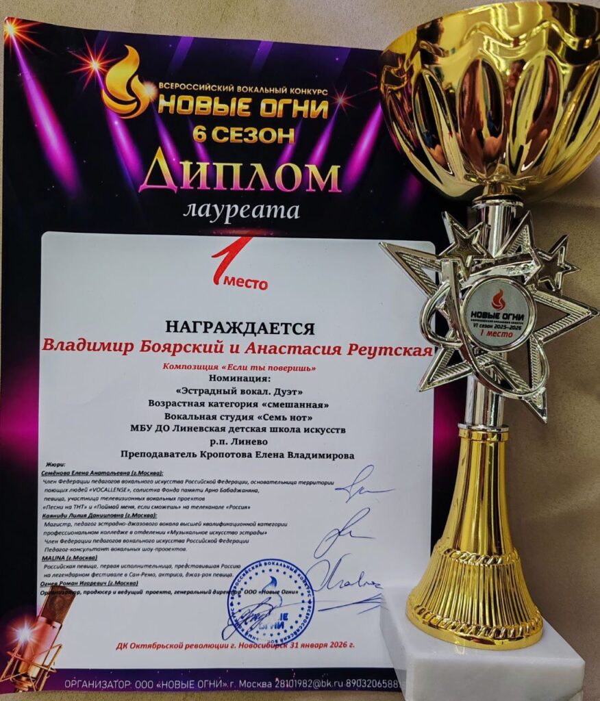 Лауреатами Всероссийского вокального конкурса «Новые огни» стали учащиеся Линевской детской школы искусств.
