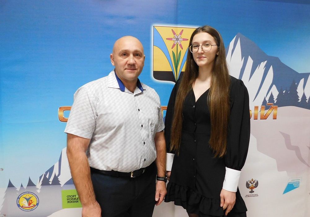 Тренер по карате киокусинкай ДЮСШ Искитимского района Виктор Глущенко и его воспитанница Милена Зебницкая