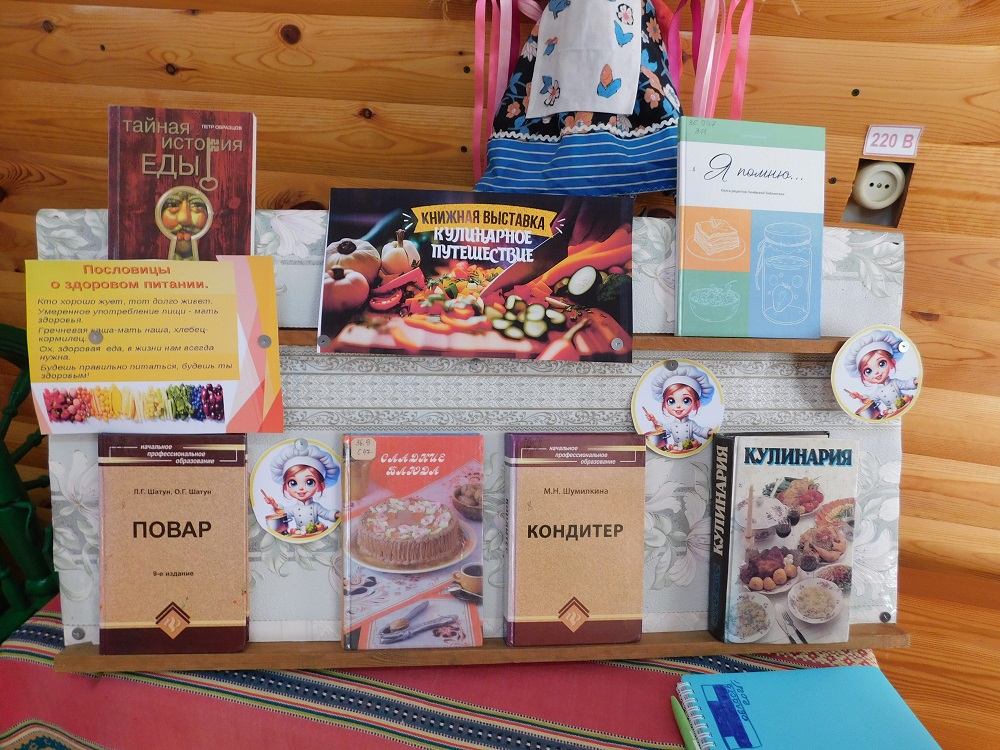 Когда первая этно-гастрономической экспедиция приехала в село Верх-Коен Искитимского района, работники культуры организовали книжную выставку «Кулинарное путешествие».
