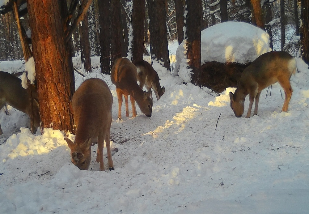Чтобы помочь животным пережить зиму, в лесу оборудовали площадки с кормушками. Их регулярно наполняют сеном, солью и зерном. Это значительно облегчает жизнь парнокопытным и птицам в холодное время года.