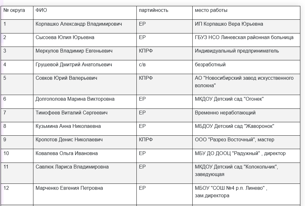 Депутаты Совета депутатов р.п. Линево Искитимского района Новосибирской области.
