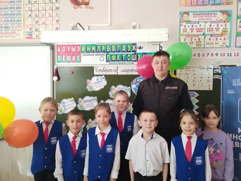 Среди учеников старших классов также была проведена профориентационная работа. Александр Сергеевич рассказал о службе в полиции, какие требования выдвигаются к будущим сотрудникам полиции и в какие учебные учреждения могут поступить абитуриенты.Также госавтоинспектор поздравил Юных инспекторов дорожного движения с приближающимся днем ЮИД, которому 6 марта исполняется 53 года с момента образования, и пожелал успехов в учебе и в профилактике детского дорожно-транспортного травматизма и пропаганде правил дорожного движения среди учащихся.