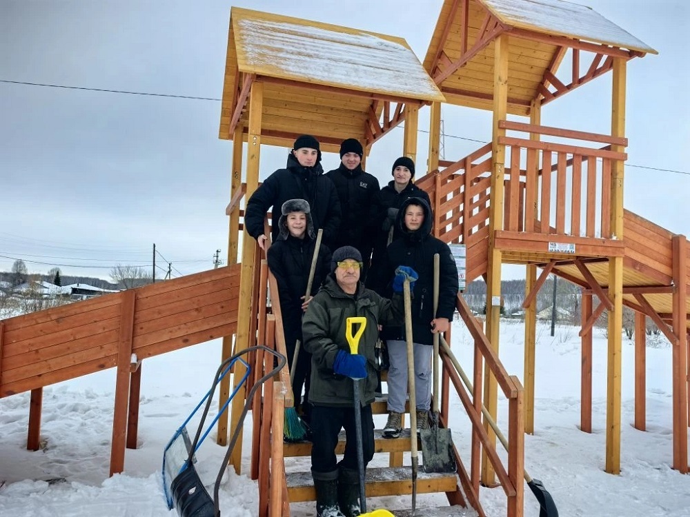 Также участники акции не остались равнодушными к состоянию детской горки. Очистили ее от снега и льда. И решили заливать скат при наступлении холодов.