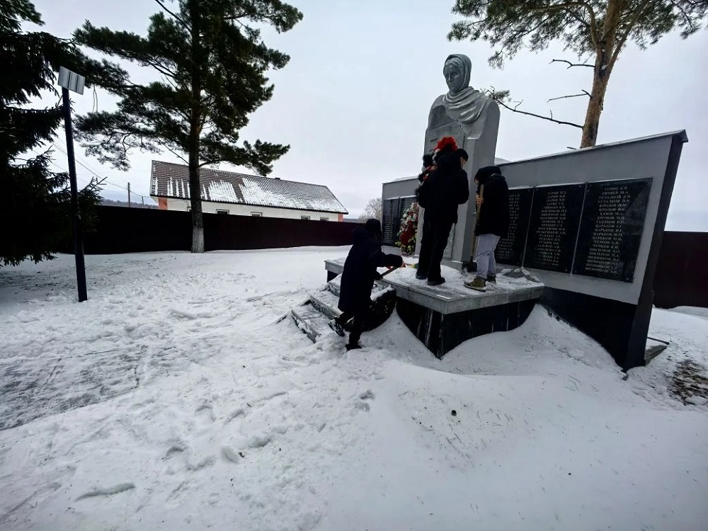 Школьники села Гусельниково очистили от снега памятник воинам, погибшим в Великой Отечественной войне.