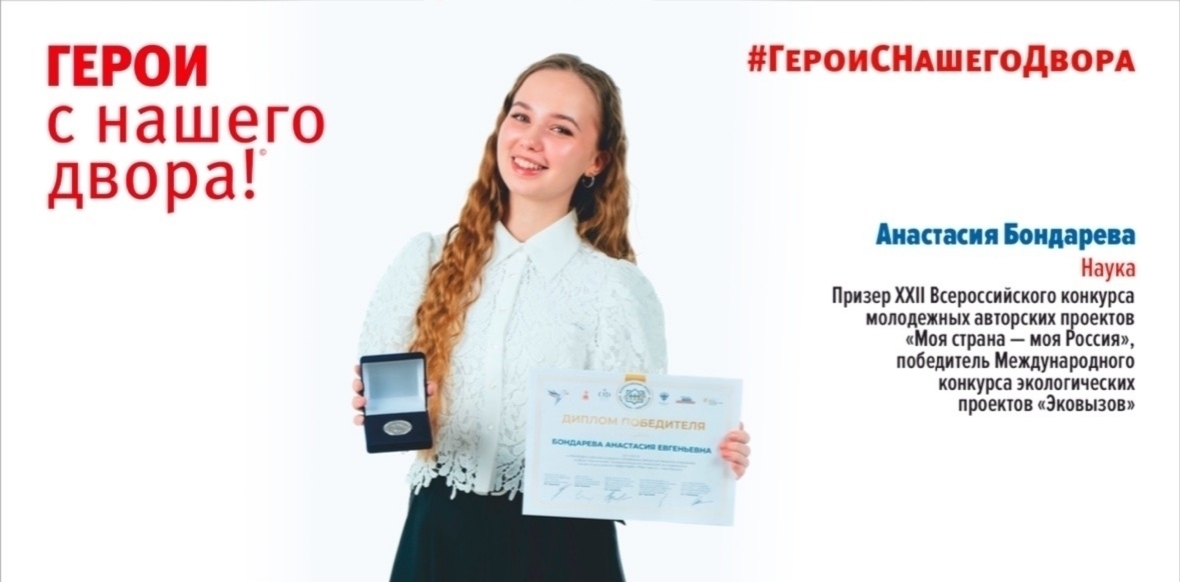 Анастасия участвует в проекте как призер XXII Всероссийского конкурса молодежных авторских проектов «Моя страна- моя Россия», победитель Международного конкурса экологических проектов «Эковызов».