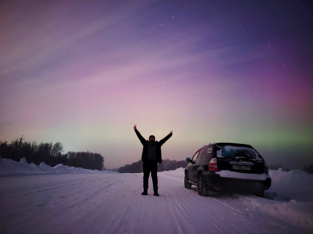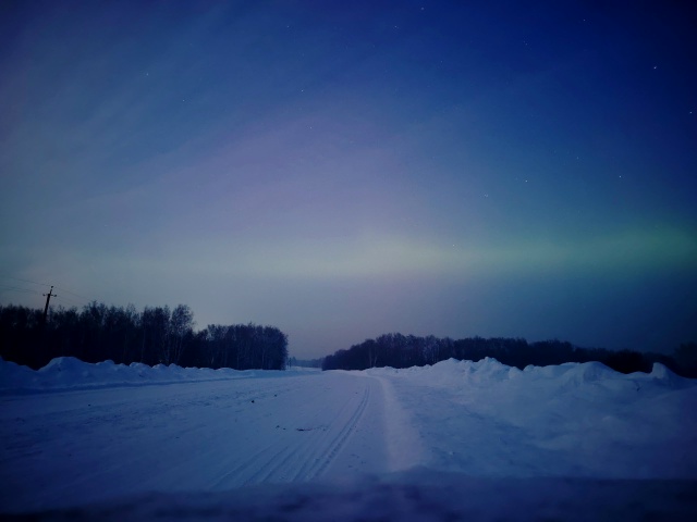 Помешать наблюдениям могла только облачность. В нашем регионе небо было ясным. Новосибирец Алексей Поляков охотился за сиянием в 25 километрах от города в направлении на деревню Жеребцово.