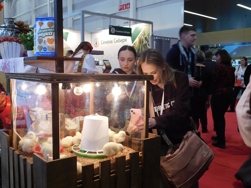 Выставка пользовалась большой популярностью у посетителей. Люди не только дегустировали разнообразные готовые мясные и молочные продукты, но и с удовольствием фотографировали стильно оформленные витрины, снимали на видео цыплят в стеклянном инкубаторе.