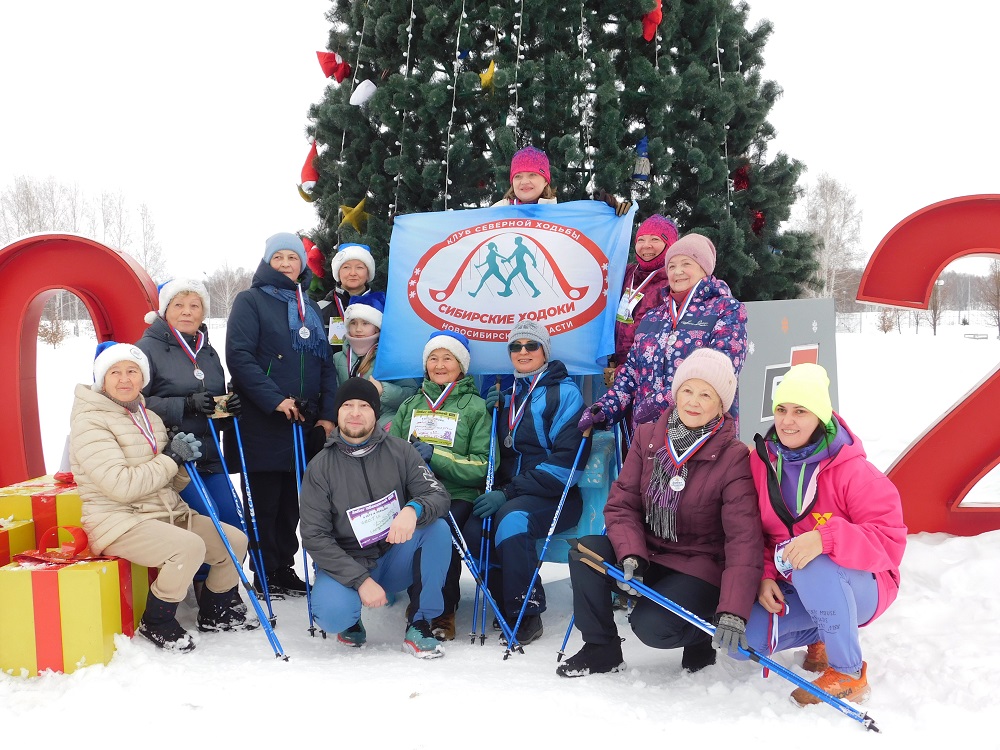 1 января 2026 года  участники клуба северной ходьбы «Сибирские ходоки» прошли дистанцию первого в Искитимском районе «Забега обещаний».