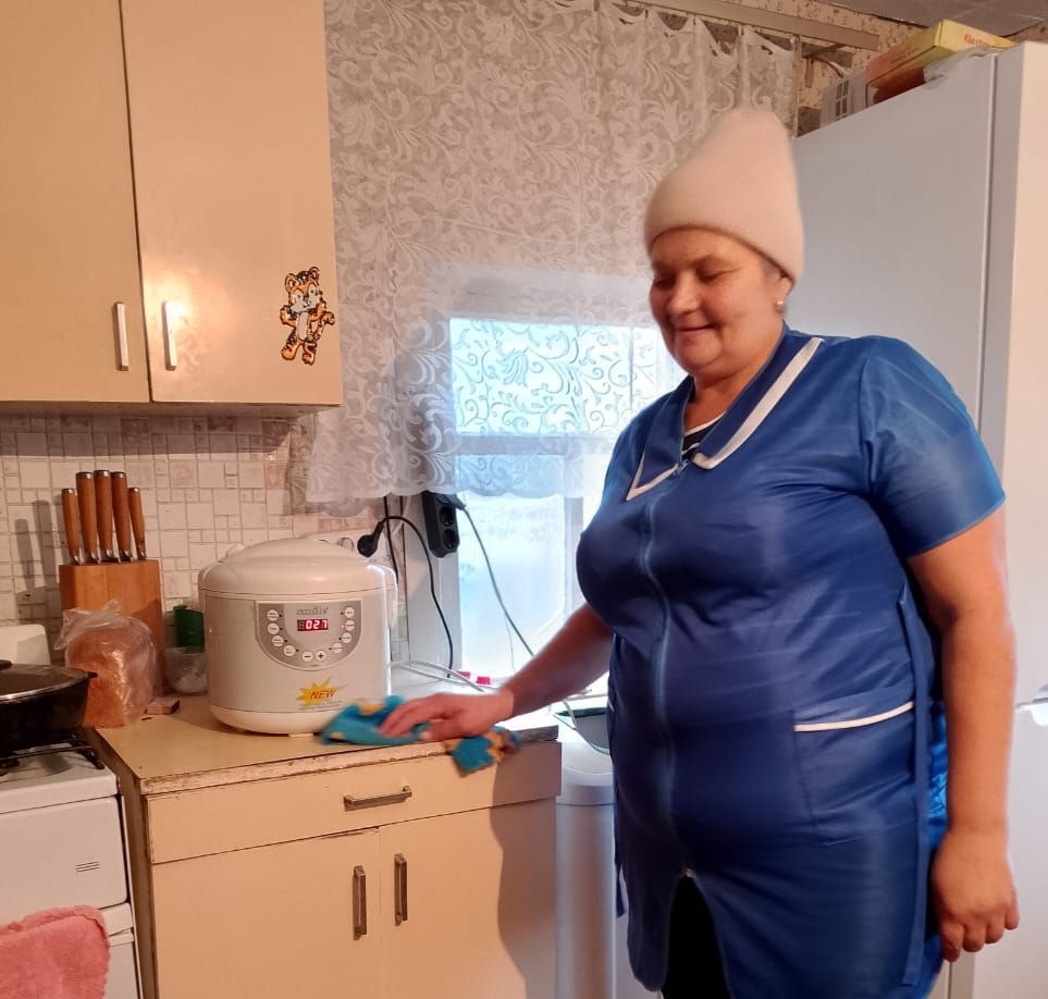 Сегодня у неё по плану визит к Анатолию Ивановичу. За разговорами не заметила, как посуду перемыла, печь затопила, пол вымыла, давление измерила, список продуктов написала, за покупки отчиталась, сообщает МБУ «КЦСОН «Вера» Искитимского района НСО»