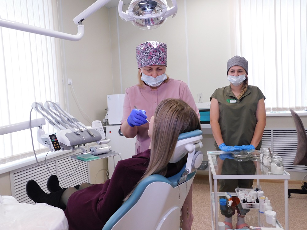 У врача-стоматолога-терапевта высшей категории Татьяны Тарасцовой стаж работы 28 лет. В амбулатории принимает пациентов с 5 ноября. Современным оснащением кабинета довольна.