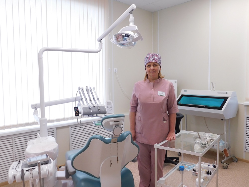 У врача-стоматолога-терапевта высшей категории Татьяны Тарасцовой стаж работы 28 лет. В амбулатории принимает пациентов с 5 ноября. Современным оснащением кабинета довольна.