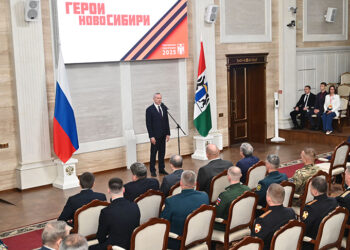 Искитимцы выстроились с российскими флагами в форме буквы Z. Во флешмобе в поддержку российских военных спецоперации на Украине приняли участие порядка 100 молодых людей.