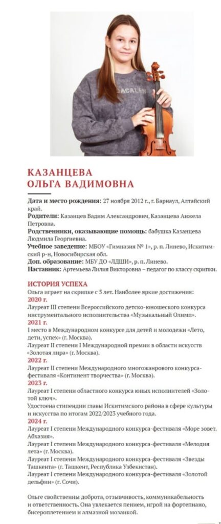 В «Энциклопедии детских достижений» есть публикации о пяти учащихся  Линевской детской школы искусств.