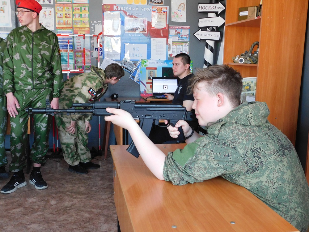 Проходили военизированную эстафету, вязали узлы, мальчики подтягивались на перекладине, девочки отжимались. Одевали общевойсковой защитный комплект (ОЗК),метали гранаты на точность, переносили боеприпасы. На огневом рубеже соревновались в сборке-разборке автомата, снаряжении магазина и стрельбе из лазерной винтовки.