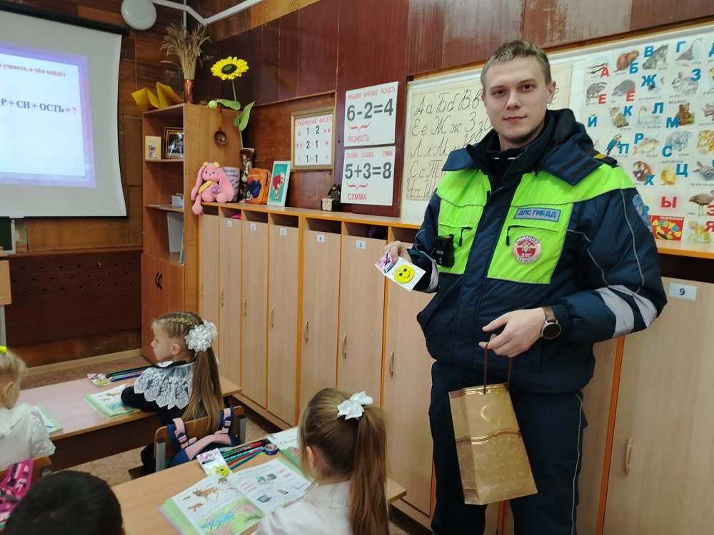 Госавтоинспекторы рассказали учащимся о том, как правильно вести себя на дорогах, пешеходных переходах зимой. Вспомнили основные дорожные знаки и сигналы светофора.