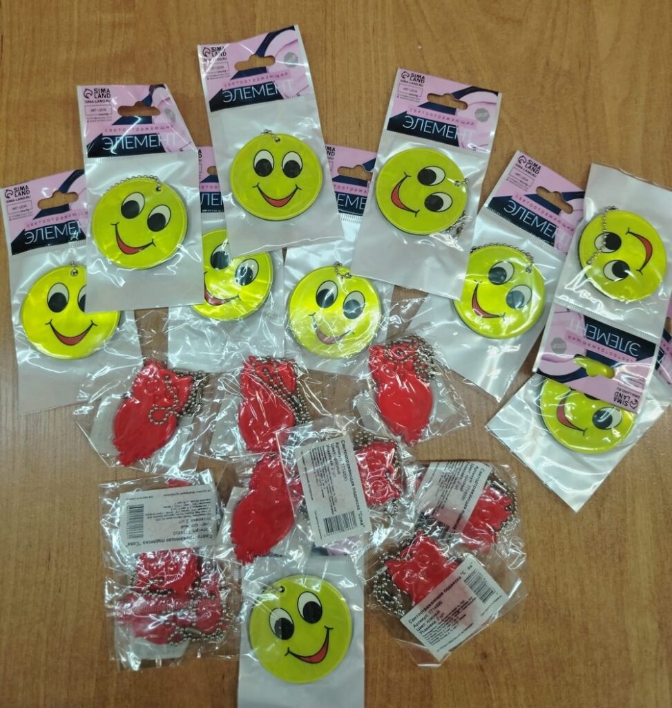 В конце встречи детям раздали светоотражающие элементы, чтобы ребятишки закрепили их на верхнюю одежду.