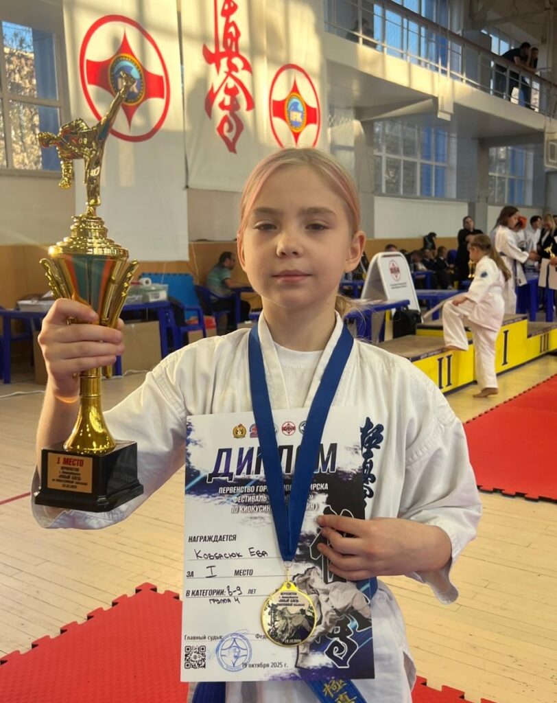 Первое место в дисциплине «Кумитэ» и 2 место в дисциплине «Ката» среди девочек 8-9 лет — заняла Ева Ковбасюк