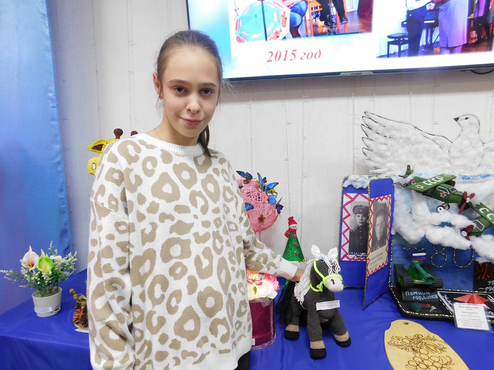 Аделина Кузнецова любит вязать крючком, каждый год представляет на выставке новые работы. Говорит, самое сложное было связать туловище лошади, так как оно большое.